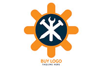 Abstract of a Mechanical Nut within it a Wrench and Two Nails Logo
