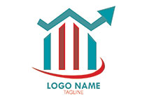 bar graph hut with checkmark and ascending arrow logo
