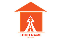 growth arrow and dollar symbol in an abstract hut logo