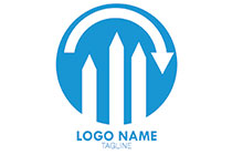 pointed bars under a circular arrow in a seal logo