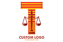 letter t sword balance scale logo