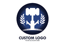 gavel and stems in a round seal logo