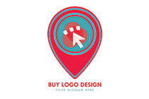 squares and overlapped circles in a location pin logo