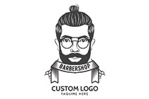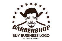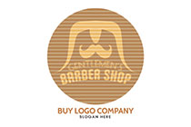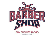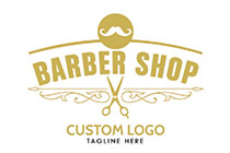 Barber Shop Name Logo with Scissors and Moustache on Top Logo