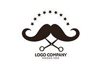 Abstract with Scissors , Mustache, and Stars in the Background Logo