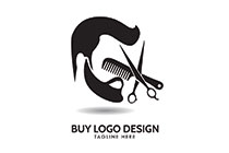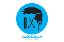 A Circle Abstract within it Feature of Men Hairstyle, A Comb and a Scissor