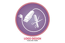 A Circle Abstract with a Trimmer, Comb, and a Scissor Logo
