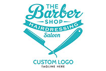 Barber Shop Logo Name with Shaving Blade Underneath it Logo