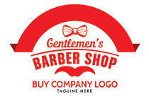 Barber Shop Logo with a Curve and Bow tie Above, and Mustachio Underneath Logo