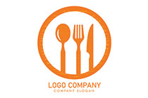 Circle Abstract Logo within it a Spoon, Folk, and a Knife Logo