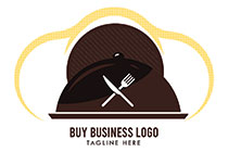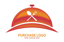 A Cloche with Folk and Knife in Front and Yellow Curves Outlining Logo