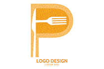 Yellow Abstract with a Knife and Folk Forming the Alphabet P Logo