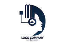 Circle Abstract Shaped as an Individual with Headphones Logo