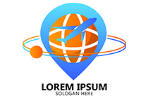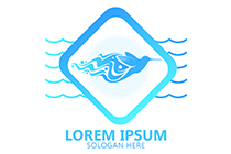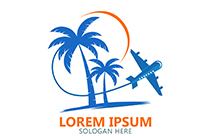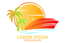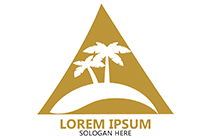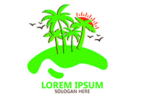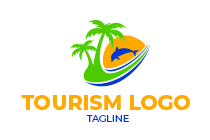 An Island with Palm Tree’s, Ocean, Dolphin, and Horizon Logo