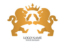 heraldic style lions with a crown logo