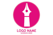 fountain pen in a round seal logo