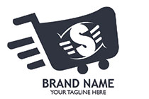 the flying shopping cart with letter s logo