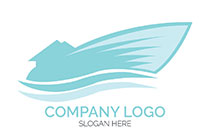 abstract speeding yacht on a body of water logo