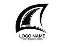 abstract boat or shark fin on water logo
