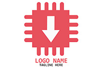 circuit chip with downward arrow logo 1270 Exclusive ready-made logo (will be sold only once). Copyright transfer to the buyer Professional customization is included in the price. More