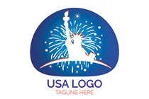 statue of liberty and fireworks in a seal logo 2790 Exclusive ready-made logo (will be sold only once). Copyright transfer to the buyer Professional customization is included in the price. More