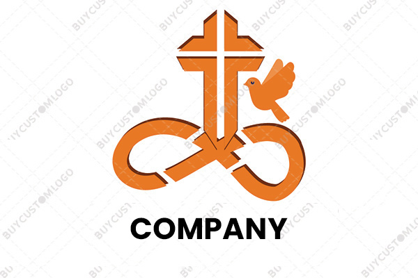LOGO DESIGN DESCRIPTION Custom logo created using the cross, dove, and a ribbon knot symbol, of which the first one represents Christianity, the character of the bird used here is utilized to show peace and love whereas the third one is used to represent a movement.