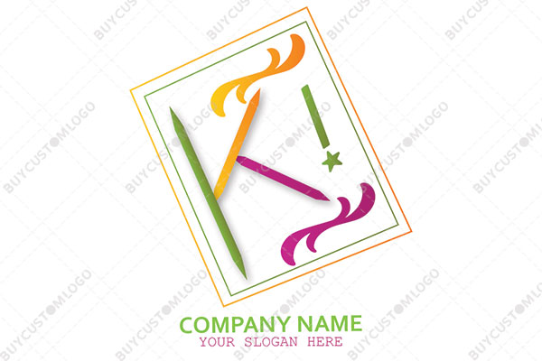 | Exclusive Logo 1005, exciting letter k colour pencils notebook frame logo