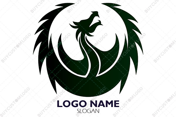 LOGO DESIGN DESCRIPTION This is a custom logo which utilizes the character of a dragon which is shooting towards the sky encompassed in a seal made from its own fur. It is created using green and black colours in gradience which makes it highly visually appealing ensuring more attention for your brand. Suitable for all types of businesses.