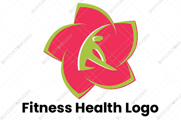 LOGO DESIGN DESCRIPTION This is a customized logo created by incorporating an abstract person that seems to be bouncing with joy or doing stretches in a flower seal. Pink and green colours are used in the design making it visually appealing. Suitable for gyms, fitness centres, health clubs as well as other related businesses.