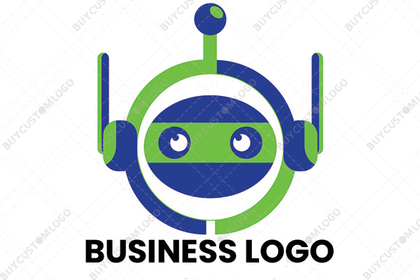 LOGO DESIGN DESCRIPTION This is a customized logo of a super robot wearing a mask on its eyes to hide its identity integrated with antennas on its head and ears which he uses to communicate. Blue and green colours are used in the design which gives it an organic look. Suitable for companies providing security services and solutions.