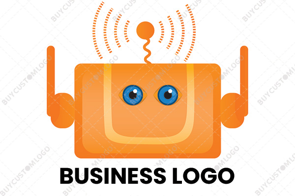LOGO DESIGN DESCRIPTION It is a custom logo created using the character of a robot integrated with a smiley, antennas on its ears and head, signals and eyes that look like lenses of a camera. Orange colour is used as the primary one in the design which gives it a strong look. Suitable for businesses providing security products, solutions and services.