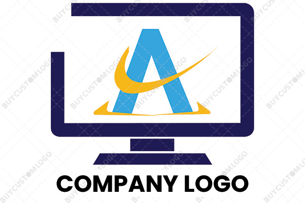 LOGO DESIGN DESCRIPTION This is a custom logo created by incorporating broad lines and checkmarks to form letter A in a computer screen designed using royal and light blue along with gold yellow colours. Suitable for software houses, social media agencies as well as blogs, podcasts, youtube channels and forums on the subject of technology and other creative businesses.