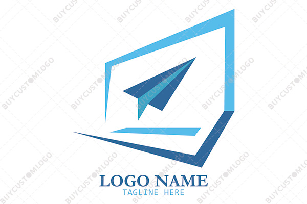 paper plane in an abstract laptop logo