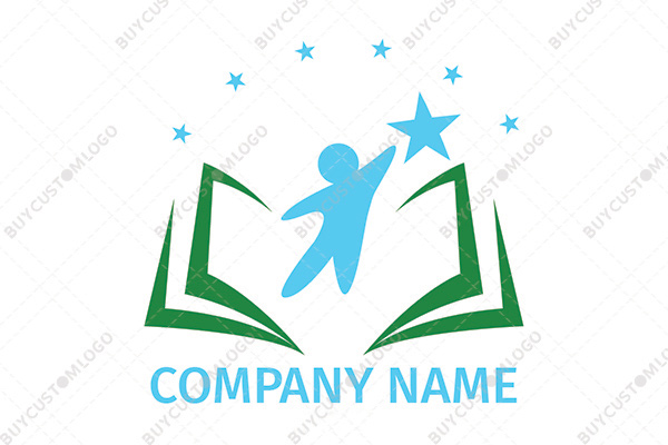 LOGO DESIGN DESCRIPTION Customized logo created using the emblems of a book and abstract character of a kid touching the stars reflecting the heights which a person can reach by gaining education. Suitable for libraries, schools, and nurseries.