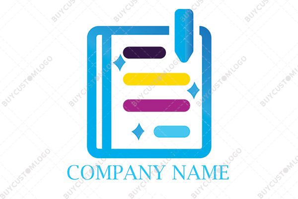 LOGO DESIGN DESCRIPTION Customized logo created using the emblem of a notebook with a marker with points written in different colours. The design is made to look highly unique and is an artistic one in its essence. Suitable for all types of educational institutions as well as stationery shops.