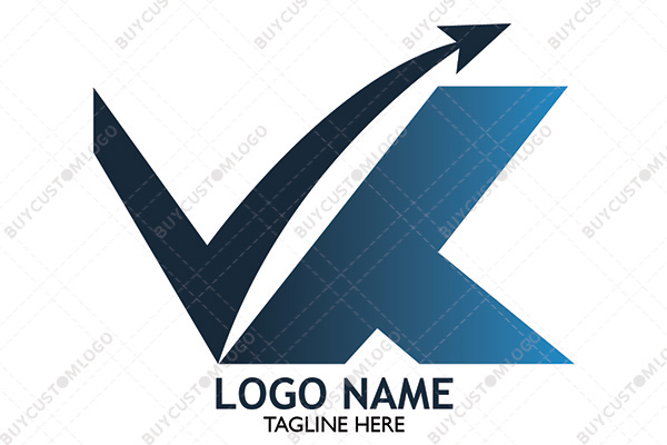 LOGO DESIGN DESCRIPTION This is a custom logo created using the emblem of tick mark integrated with an arrow that is trending upwards which symbolizes growth achieved by taking the right actions and broad lines which could be read as letter K, Y or V and Y. Navy blue is used with gradience in the design which will communicate luxury and exclusiveness for your brand however it could be reproduced in any colour without the loss of quality to better suit your business values. Highly suitable for financial services, investment firms, real estate, stock brokers as well as other related businesses.