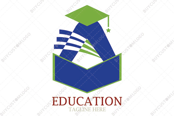 LOGO DESIGN DESCRIPTION Customized logo created combining the emblems of a book, square hat, and hills to look like a character of the letter A reading. The design is highly unique that will help your brand stand out from the competition. Suitable for all types of educational institutions.
