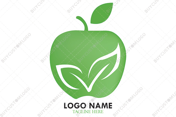 LOGO DESIGN DESCRIPTION This is a customized logo created by incorporating a stem with leaves in an abstract apple silhouette using negative spaces. Green is used with gradience in the design however it could be reproduced in any flat colour without the loss of quality. Suitable for businesses selling fertilizers and seeds as well as other entities related to agriculture.