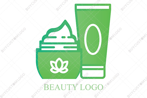 LOGO DESIGN DESCRIPTION This is a customized logo created using the emblems of a facewash and face cream designed with green as the primary colour. The visuals of the design give it a natural look which will communicate the love of nature for your brand. Highly suitable for businesses selling organic beauty products.