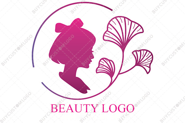 LOGO DESIGN DESCRIPTION This is a custom logo of a young geisha in silhouette style integrated with a stem with flowers modified to look like hand fans solidifying the theme. Pink and indigo colours are used with gradience in the design which makes it highly suitable for brands targetting the female audience such as cosmetics, fashion house, clothing, beauty salons etc.