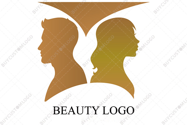 LOGO DESIGN DESCRIPTION This is a customized logo created using the characters of a man and a woman with an abstract roof over them symbolizing that your business is a place that serves both of the genders. It could be reproduced in any flat colour of your choice without the loss of quality. Suitable for many businesses.