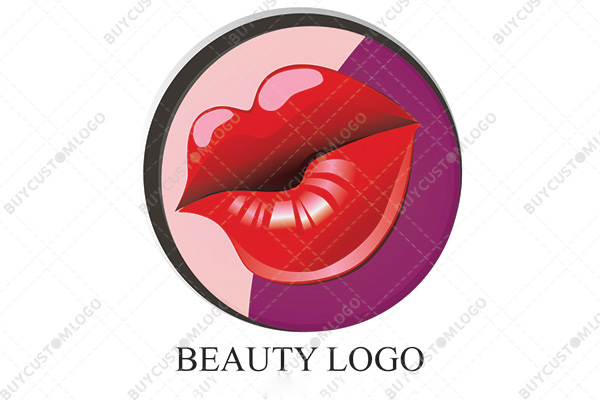 LOGO DESIGN DESCRIPTION This is a custom logo of lips with glossy lipstick on them encompassed in a colourful seal. Red, white, pink, black and purple are used in the design however it could be reproduced flat in any four colours of your choice without any loss of quality. Suitable for cosmetics, beauty salons as well as other businesses selling care products for females.