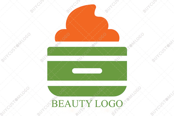 LOGO DESIGN DESCRIPTION This is a minimal custom logo of a filled beauty cream container modifying the emblems of rectangles and a flame. Green and orange are used in the design however it could be reproduced in any colours of your choice without the loss of quality. Highly suitable for cosmetics businesses.