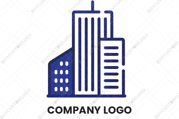 LOGO DESIGN DESCRIPTION This is a customized logo created combining the emblems of an apartment, hotel and office building created with linework and ovals. Multiple shades of blue are used in the design with gradience however it could be reproduced in any colours of your choice without the loss of quality. Suitable for real estate, construction and other related businesses.