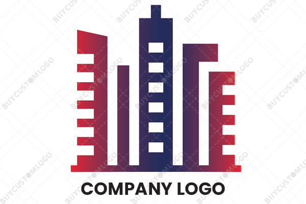 LOGO DESIGN DESCRIPTION This is a customized logo created using the emblems of abstract buildings and a tower that depicts a skyline. Red and blue are used with gradience in the design however it could be reproduced in any flat colour of your choice without the loss of quality. Suitable for real estate, construction as well as other related businesses.