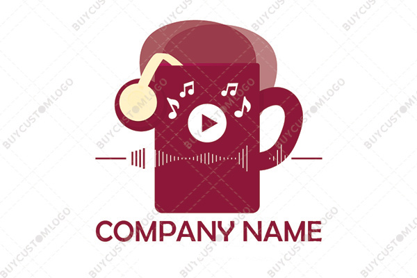 LOGO DESIGN DESCRIPTION Custom logo created combining the emblems of a handheld media player modified to look like a coffee cup well integrated with play symbol, headphones, duplet and eighth note to represent music. The design is highly unique that will give your brand a look that stands out from the competition.