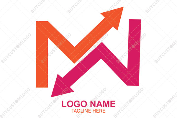 LOGO DESIGN DESCRIPTION It is a customized logo created using arrows with broad lines modified to resemble the letters M and W. The design could be reproduced in any two colours of your choice with alphabets W and W or M and M. Highly suitable for financial services as well as other businesses.