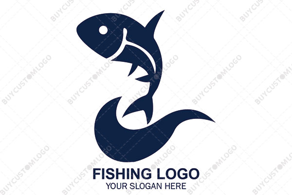 LOGO DESIGN DESCRIPTION This is a customized logo of a happy bouncing fish created in silhouette style with a big smile incorporated in negative space, which is integrated with an abstract wave to depict a body of water. Dark navy blue is used in the design however it could be reproduced in any colour of your choice without the loss of quality. Suitable for all types of businesses.