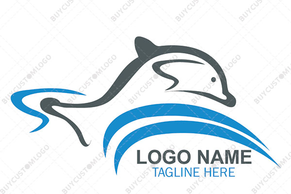 | Exclusive Logo 1784, playful energetic dolphin on waves logo