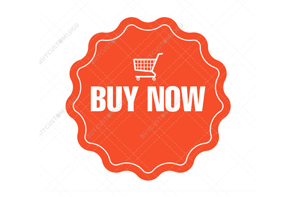 LOGO DESIGN DESCRIPTION It is a badge style custom button created using the emblems of wavy circle and circular line incorporated with a shopping cart and typography BUY NOW designed with orange and white colours.